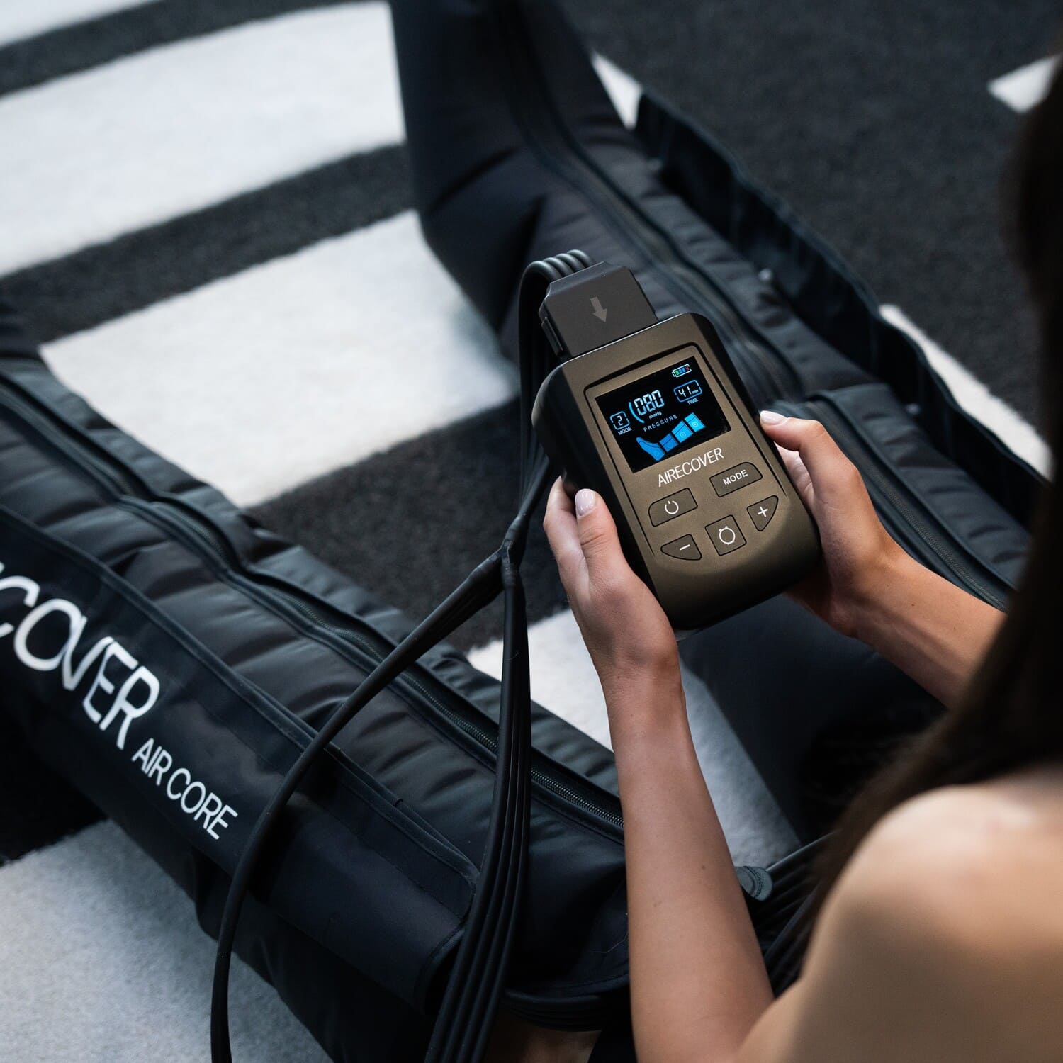 Air Core es un dispositivo compacto y potente de presoterapia que ofrece un masaje por compresión rápido y efectivo para mejorar la circulación y acelerar la recuperación muscular.
